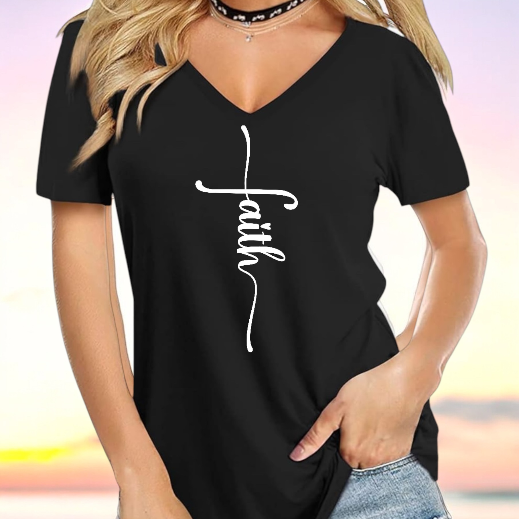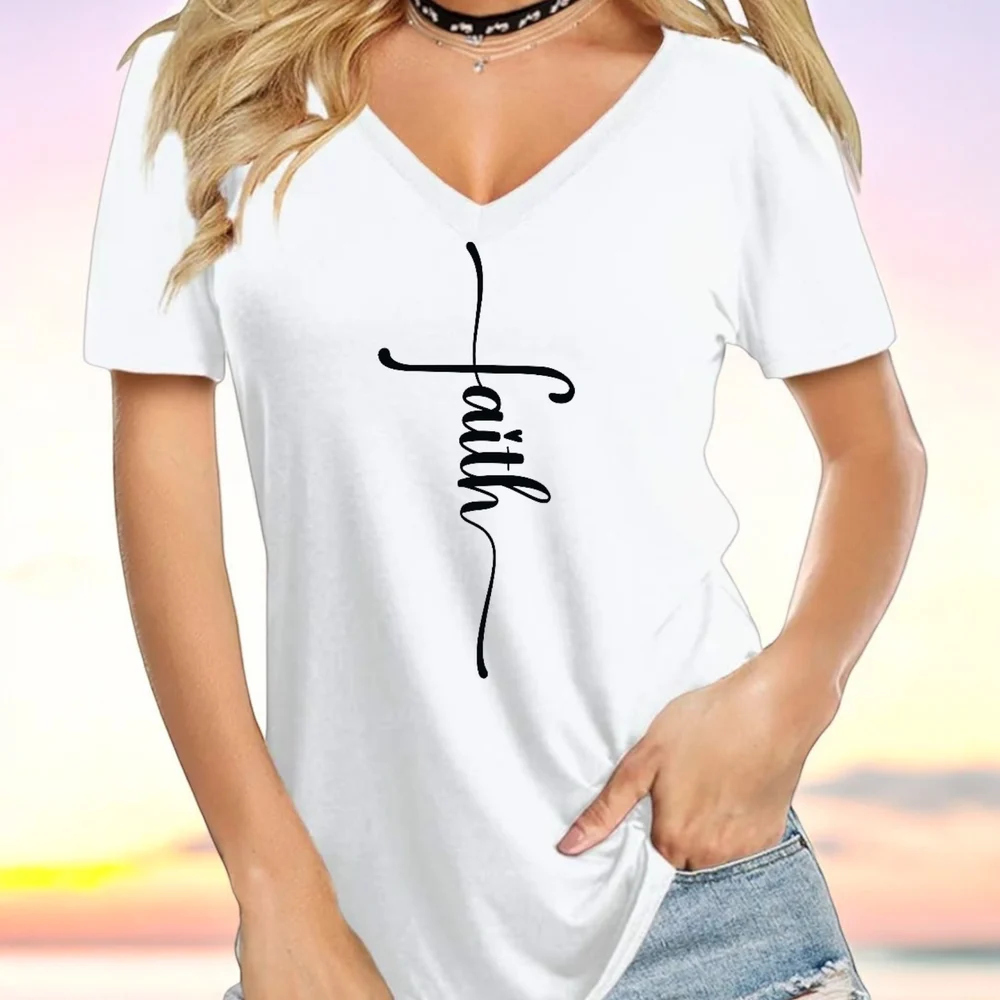 Woman’s V neck T-Faith cross